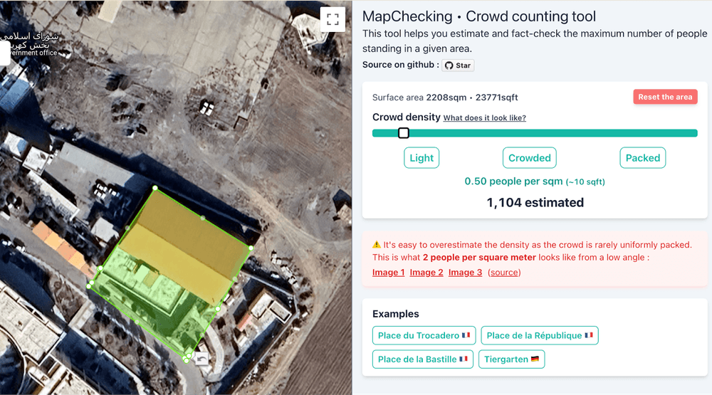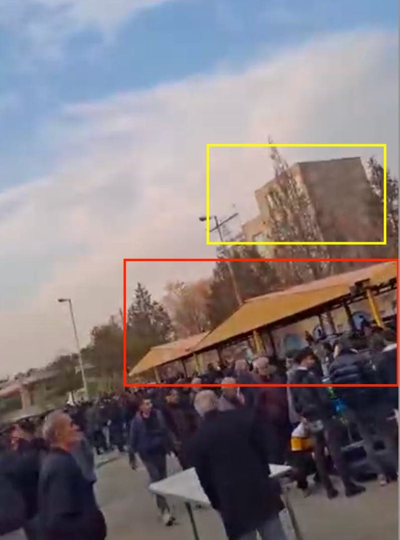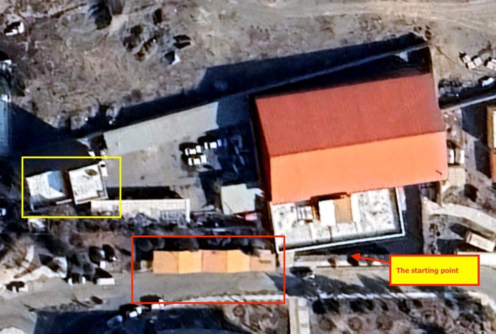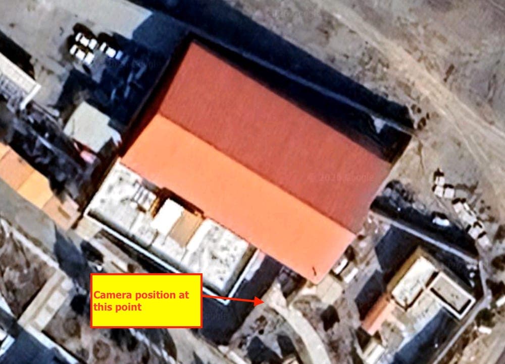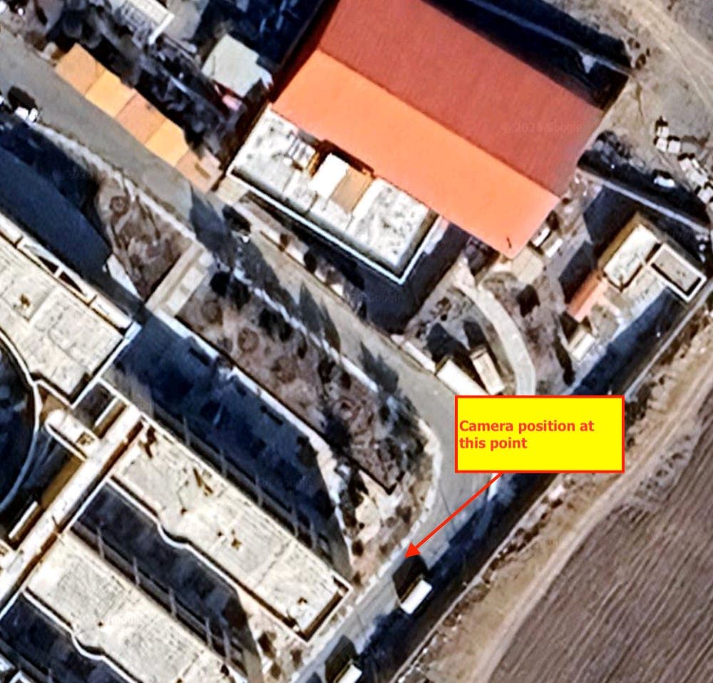 Using the online tool, MapChecking, Factnameh estimated the maximum capacity of the area for bodies: approximately 1,100 individuals, assuming 2 m² per person. Accounting for unused corners and space inefficiencies, we estimate around 800 bodies could be accommodated in the cold storage, warehouse, and adjacent dirt area. This calculation excludes scattered bodies elsewhere visible in the video. MapChecking