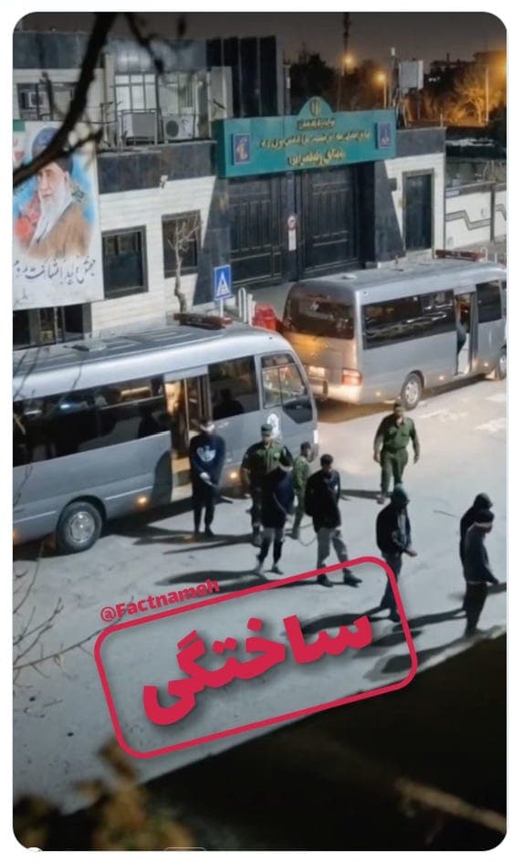A video circulating online alleges that prisoners are being moved from Evin Prison to Islamic Revolutionary Guard Corps bases for use as human shields. The claim is unsupported. The footage shows multiple markers of AI production, including nonsensical on-screen text, meaningless road signage, and a synthetic, computer-generated narration. At present, there is no confirmed information about prisoner transfers or about conditions inside Iran’s prisons.
