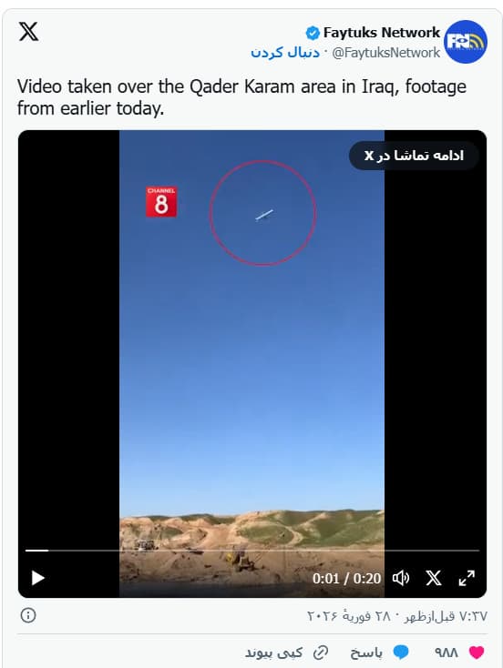 On 28 February 2026, social media users reported hearing the sound of low-flying fighter jets over parts of Iran. However, the videos examined in this review did not show any U.S. or Israeli aircraft. In one case, the aircraft visible was identified as an Iranian Air Force MiG-29. Most of the sounds captured in the reviewed audio and video clips are consistent with BGM-109 Tomahawk cruise missiles, which use a turbofan engine and fly at very low altitude. Tomahawks are designed to travel close to the ground to allow their terrain-matching guidance systems to function accurately and to reduce radar detection. The reviewed videos do not provide evidence of U.S. or Israeli fighter jets operating over Iran.