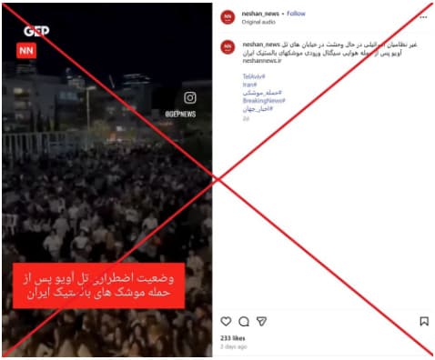 Old Video of Crowd Panic in Tel Aviv Misattributed to Iranian Missile Attacks