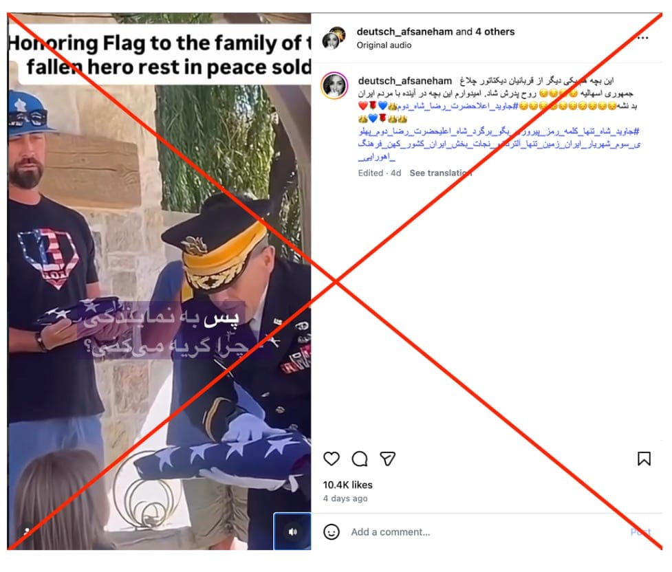 Clips shared on Instagram claim to show U.S. military officers informing families about soldiers killed in recent attacks, including scenes of a child receiving news about her father and a woman learning about her husband’s death. These videos are not related to the current conflict and were published online years earlier across platforms like YouTube, TikTok, and Instagram. In reality, such moments are not publicly filmed due to strict U.S. military protocols protecting families’ privacy. Many similar videos online are staged or produced for training purposes, not real notifications of casualties.
