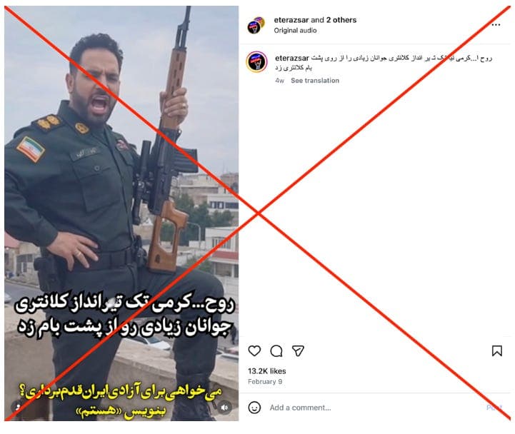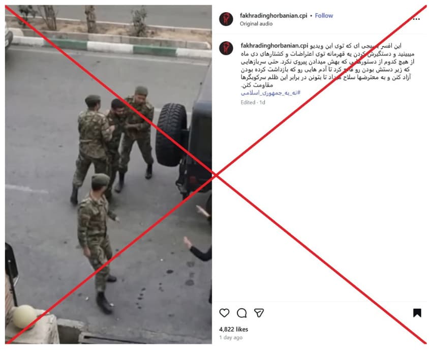 AI-altered video falsely showing an attack on a Basij checkpoint in Tehran
