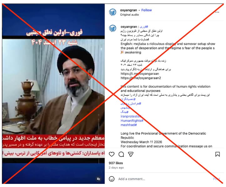 AI-generated video falsely presented as first speech by Iran’s newly appointed supreme leader