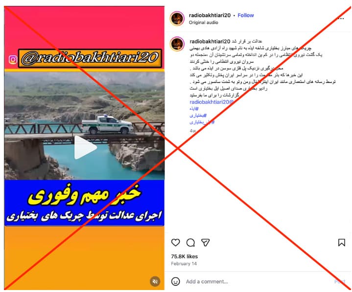 AI-generated video falsely showing an attack on an Iranian police patrol in Izeh