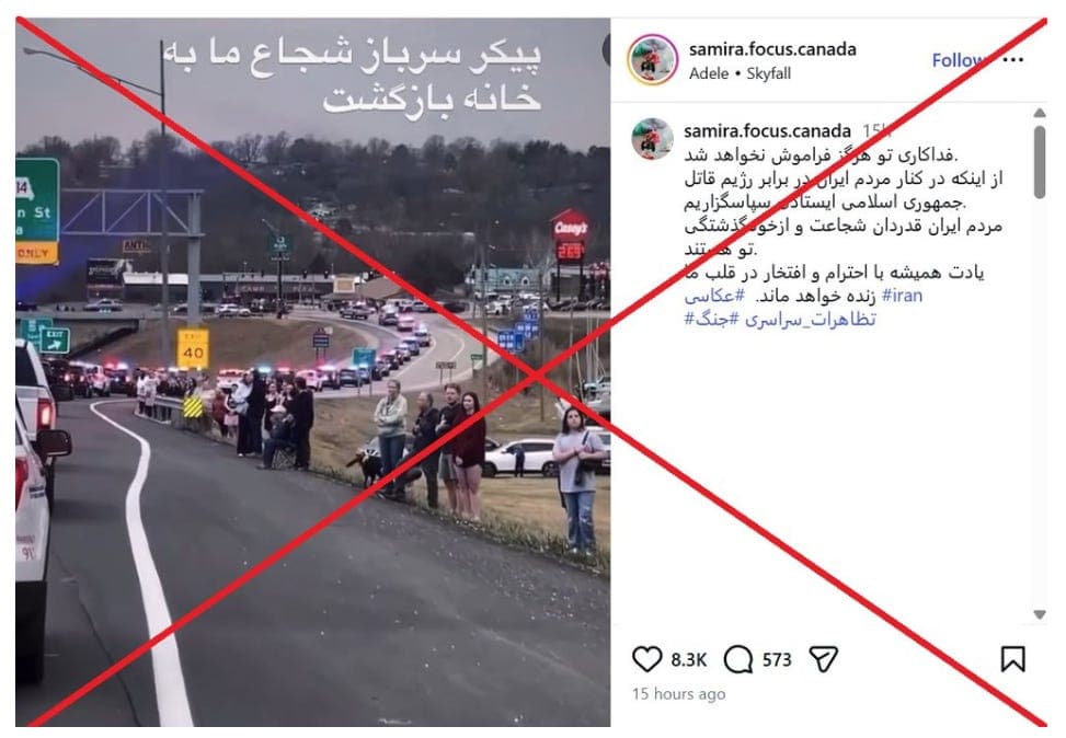 The video actually shows a memorial for two sheriff’s deputies killed during a police pursuit in Missouri. It has been miscaptioned to falsely suggest it depicts casualties from the Iran-related conflict.